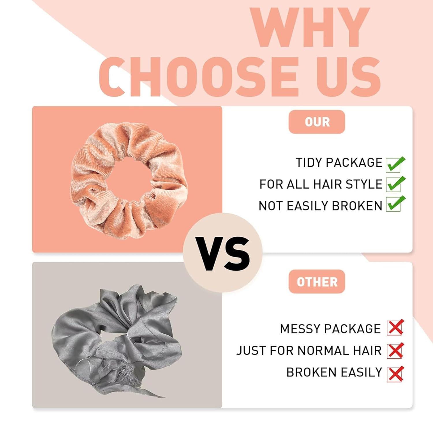 Velvet material – These hair scrunchies are made of soft velvet, so soft shiny and comfortable. Each hair bobble can fix your hair well and will not hurt your hair. They are fashionable hair accessories for your daily life and give to others