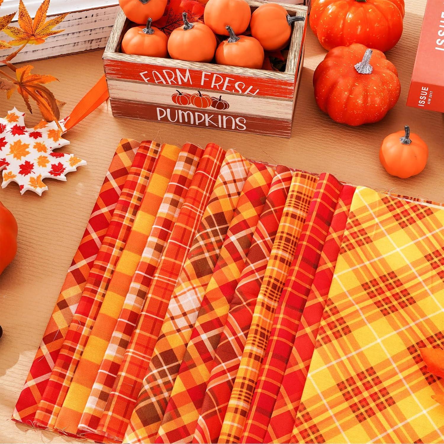 Whaline 12Pcs Fall Cotton Fabric Bundles 18 x 22 Inch Autumn Buffalo Plaid Fat Quarters Plaid Quilting Patchwork Squares Sewing Fabrics for Harvest Thanksgiving DIY Handmade Craft Home Party Decor(10 x 10 Inch)