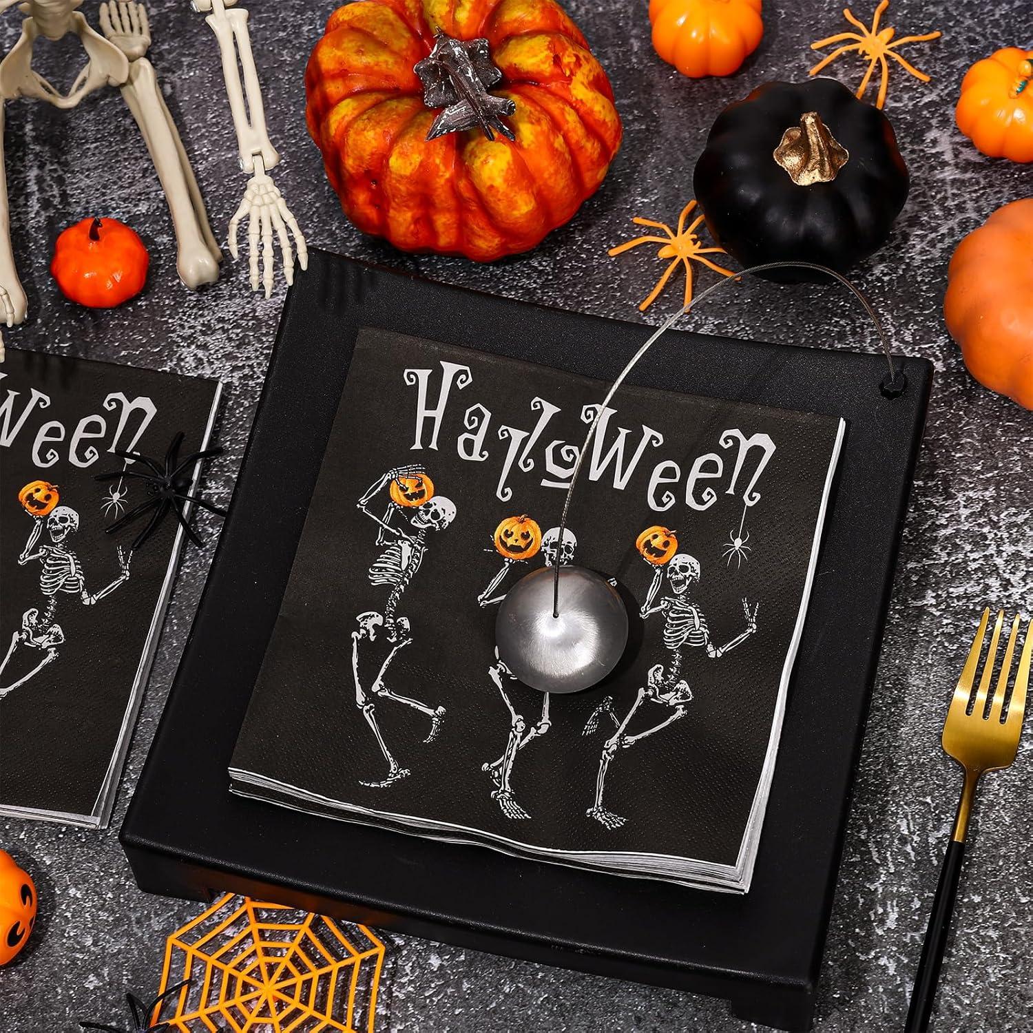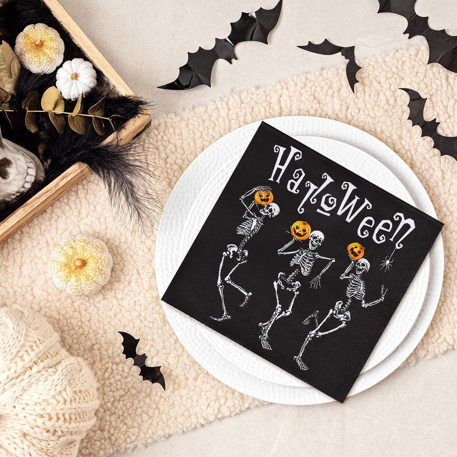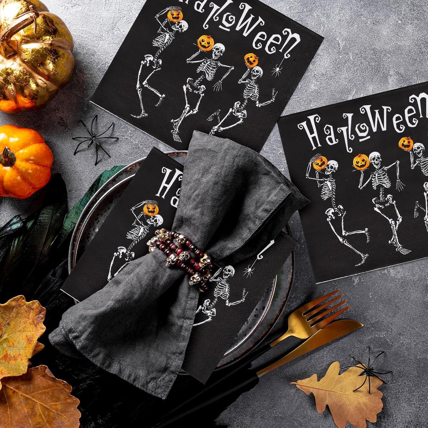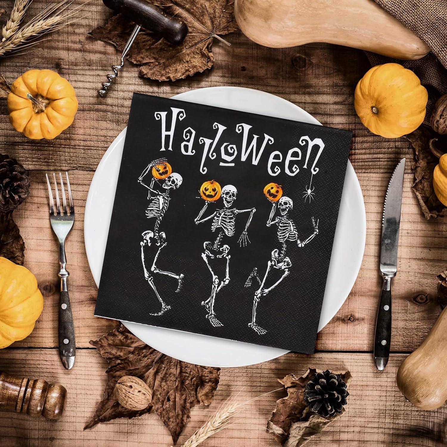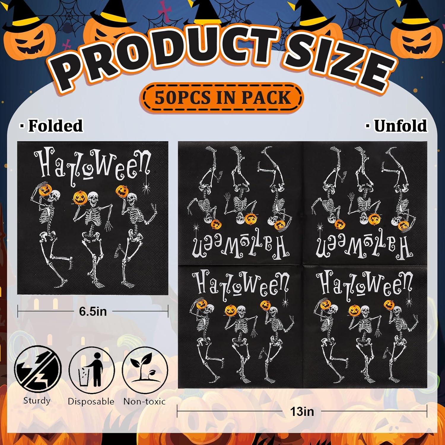 There are 50Pcs Halloween theme paper napkins with skeleton and pumpkin design for you. They will be suitable to be served as party supplies for the sufficient quantity and decorative nature.