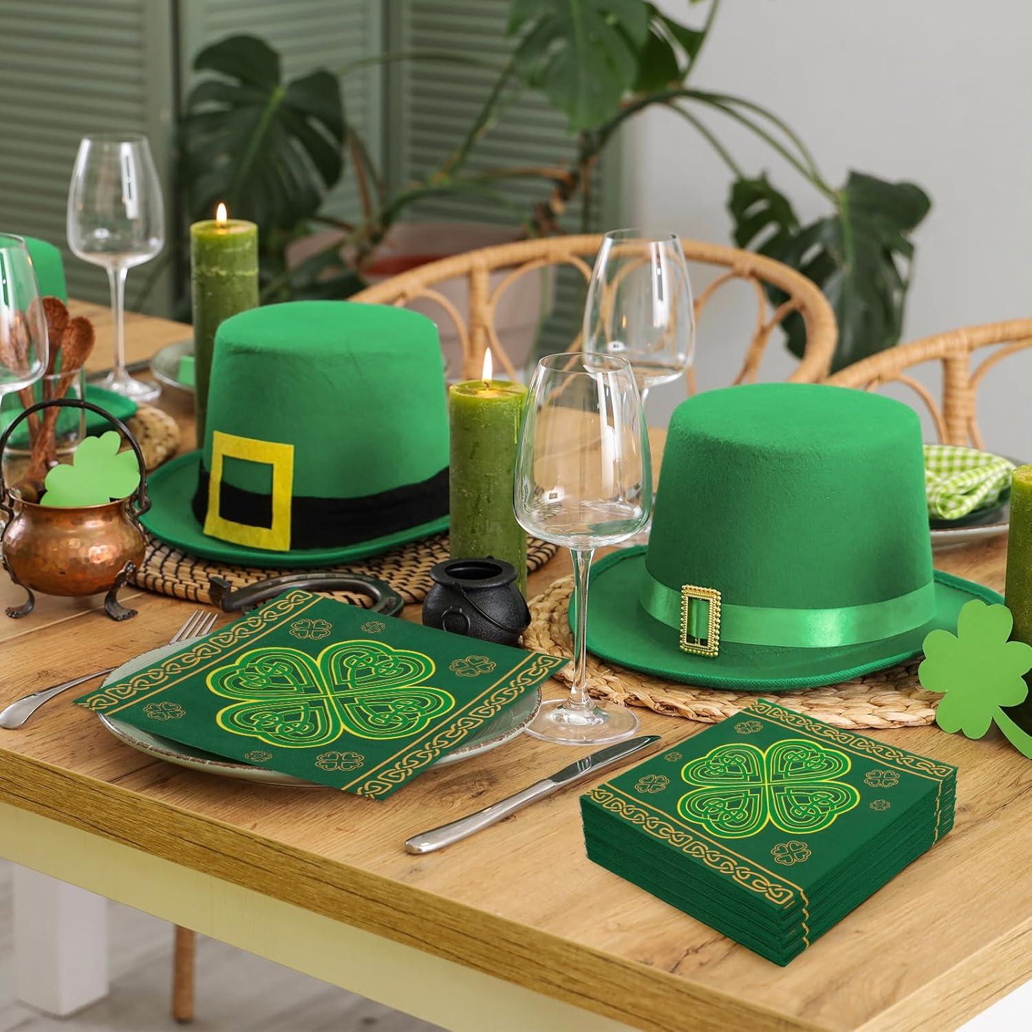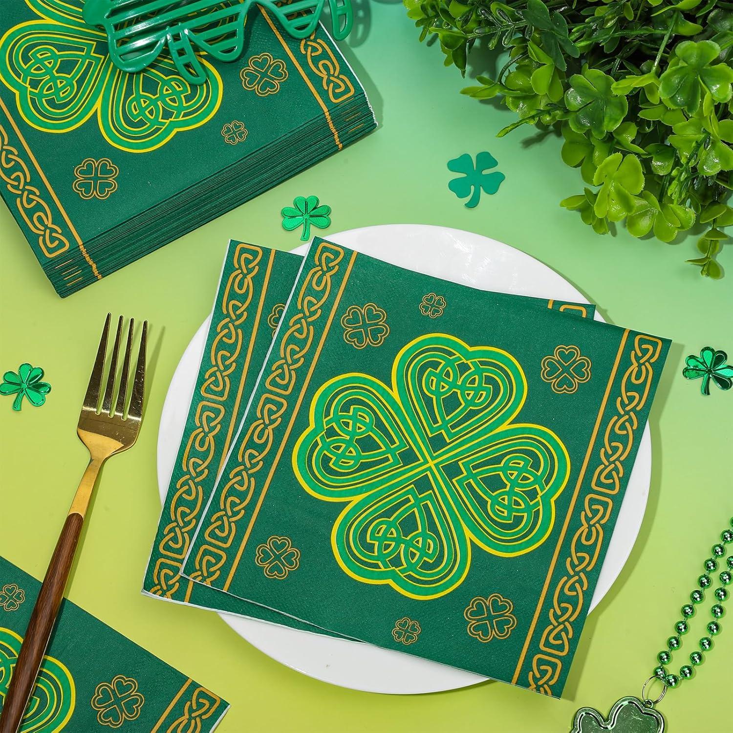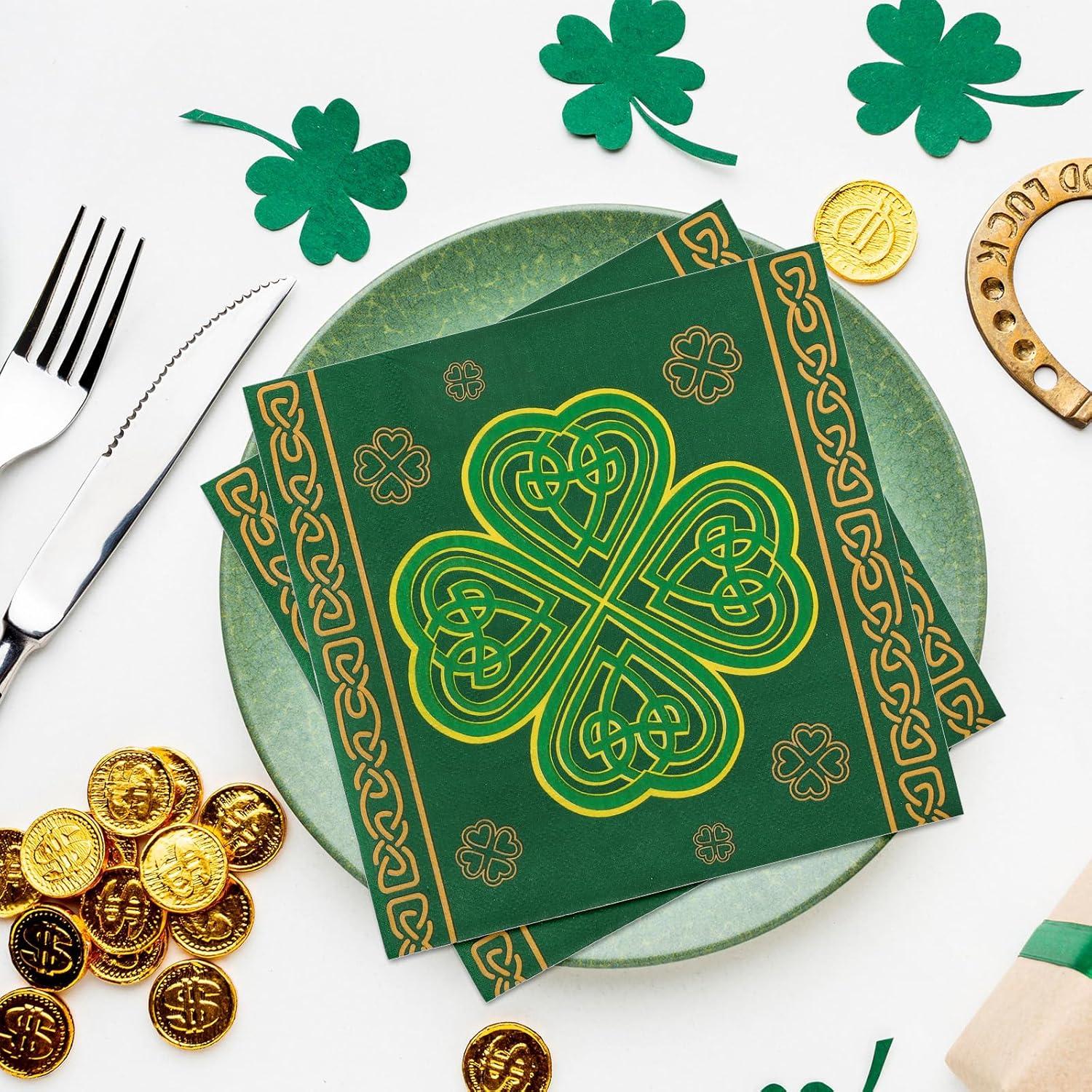 Whaline 50Pcs Halloween Skull Paper Napkins Dancing Skeleton Pumpkin Black Disposable Luncheon Dinner Table Napkins for Holiday Trick or Treat Party Decor Supplies(St. Patrick’s Day)