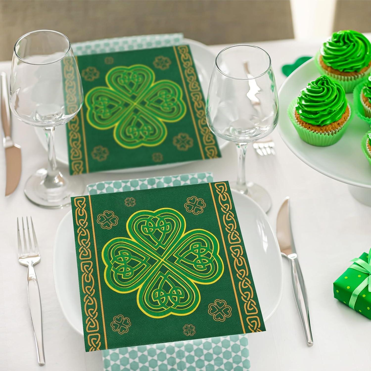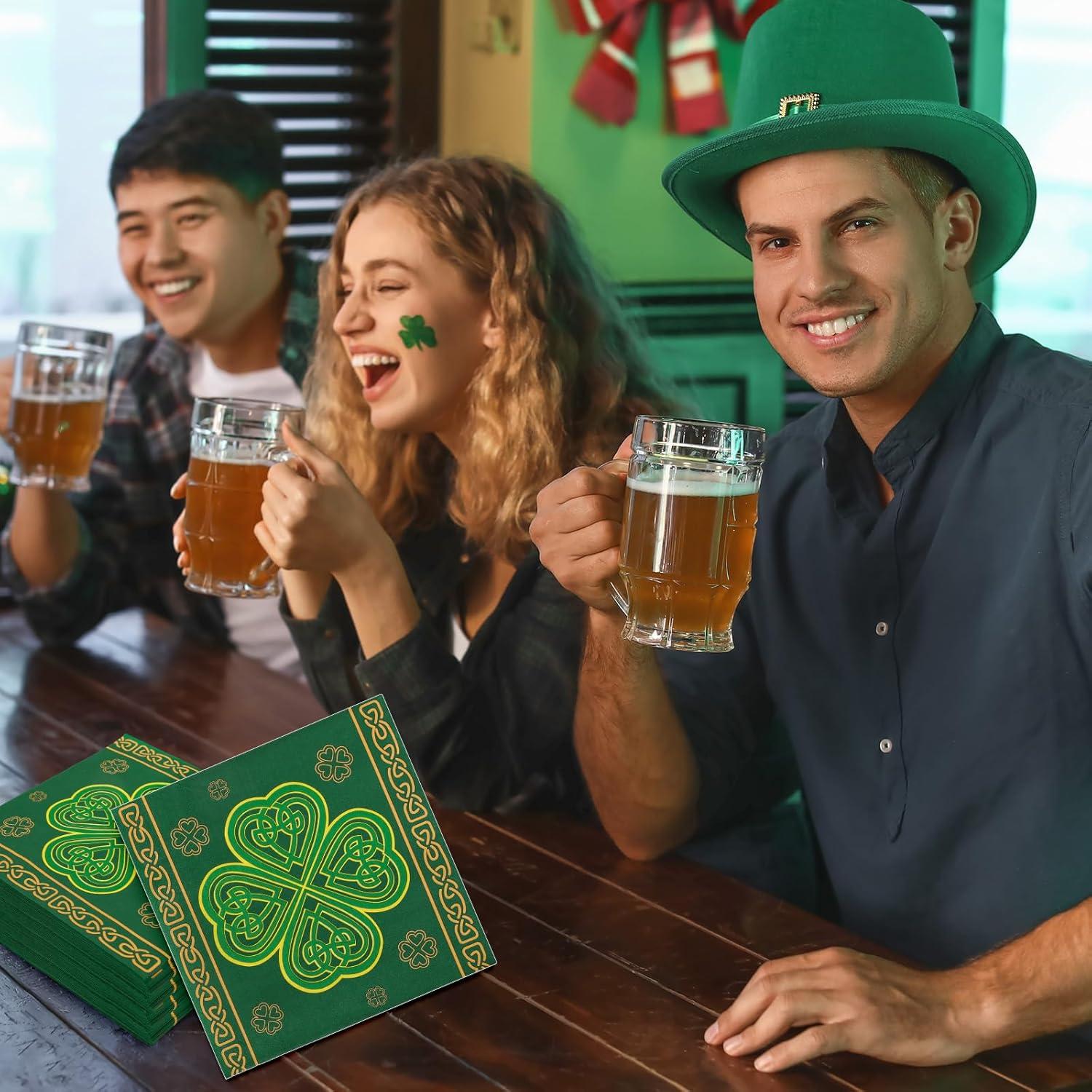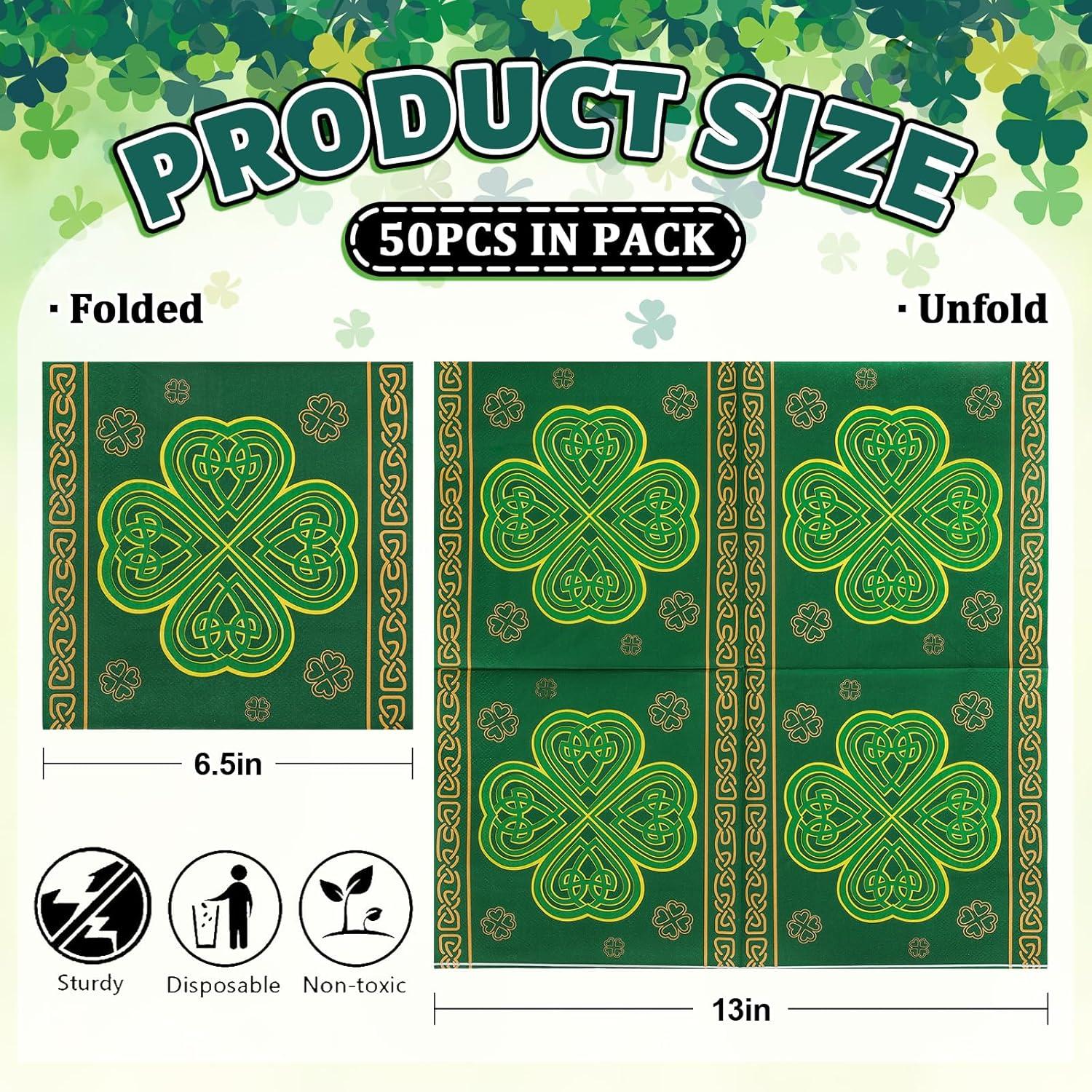 Whaline 50Pcs Halloween Skull Paper Napkins Dancing Skeleton Pumpkin Black Disposable Luncheon Dinner Table Napkins for Holiday Trick or Treat Party Decor Supplies(St. Patrick’s Day)