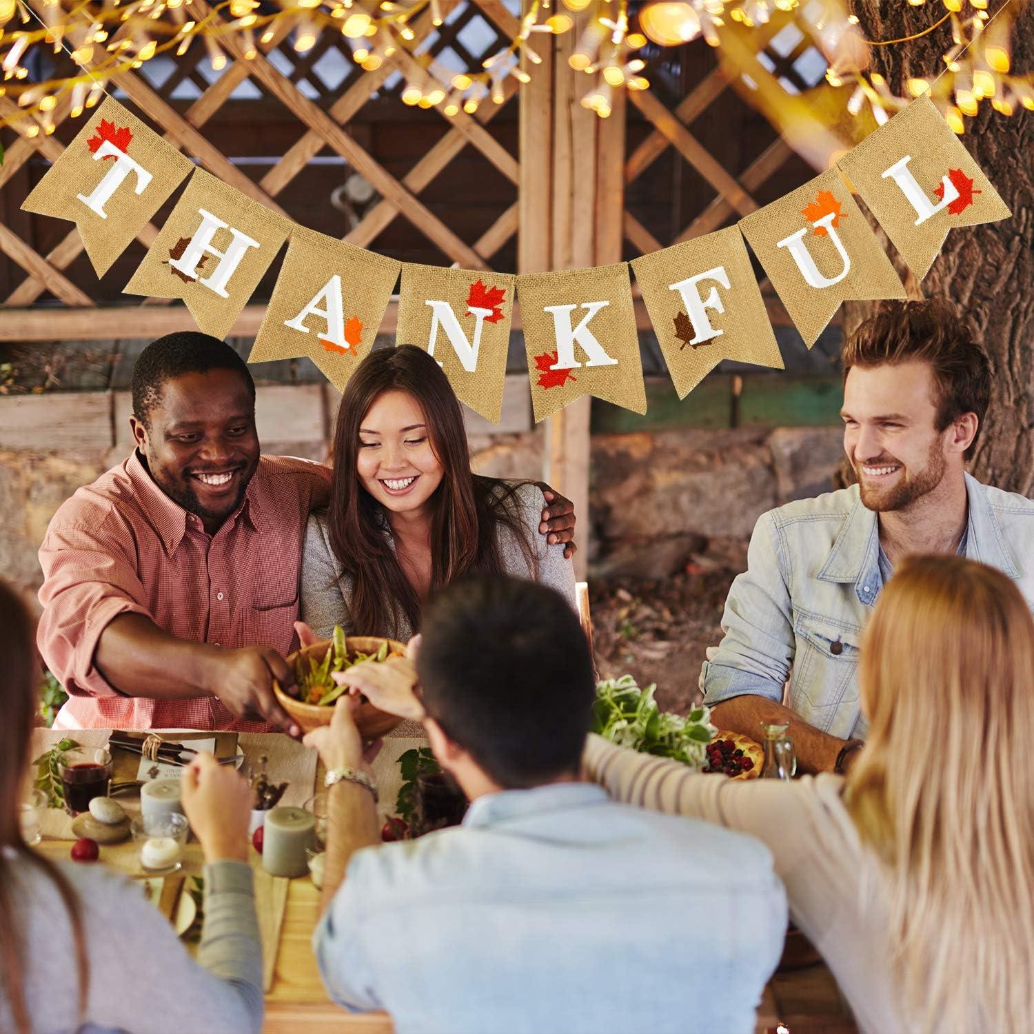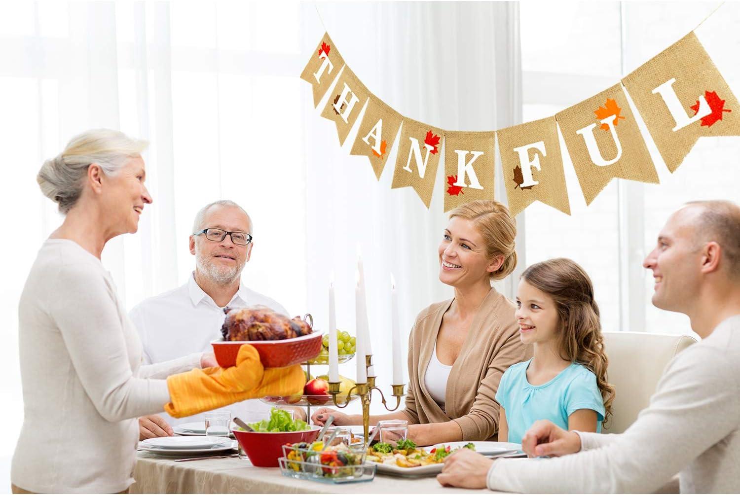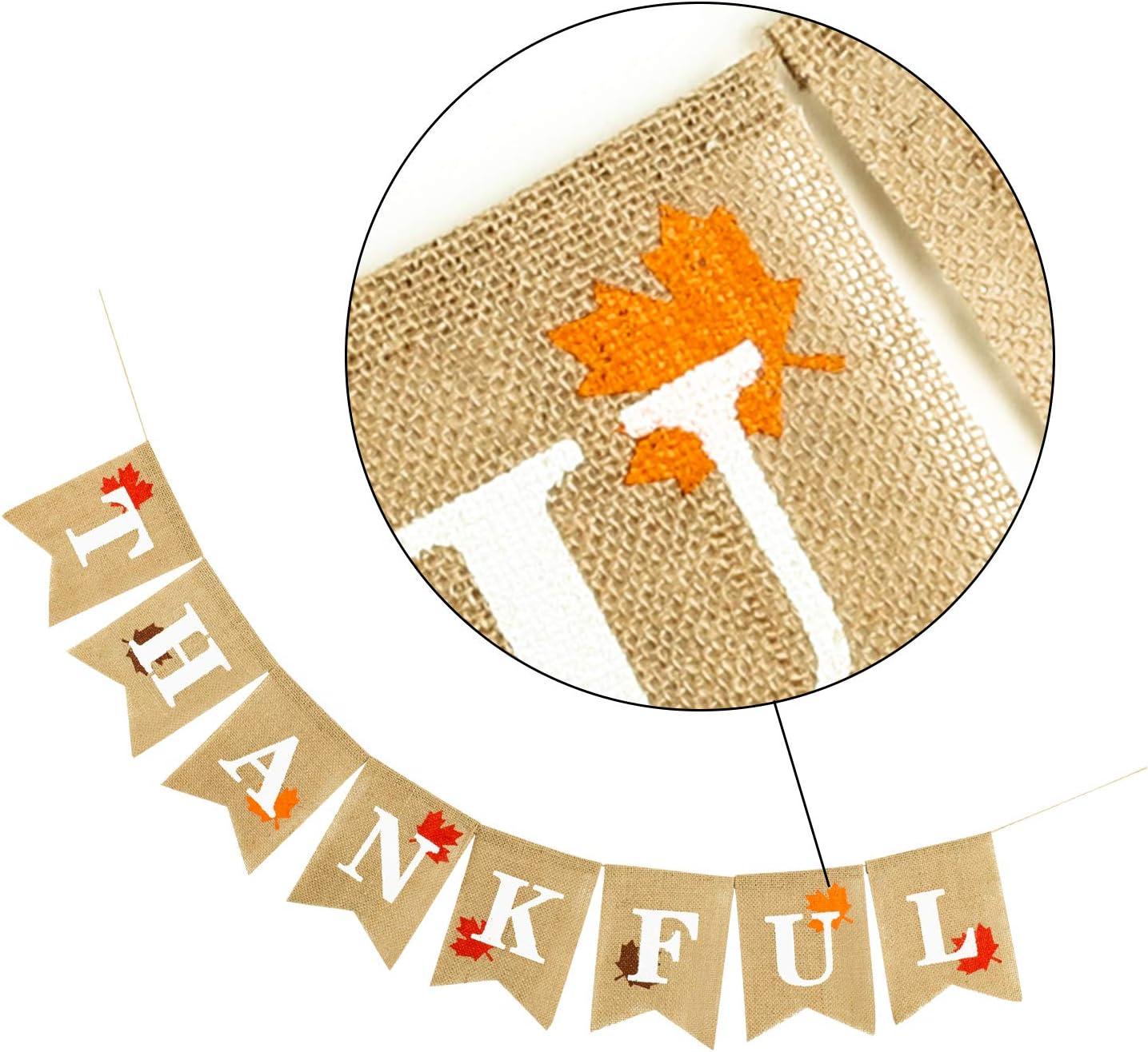 Whaline Thankful Burlap Banner with Rustic Autumn Maple Leaves Thanksgiving Day Decorations Garland Fall Harvest Home Decor Mantel Fireplace Wall Hanging