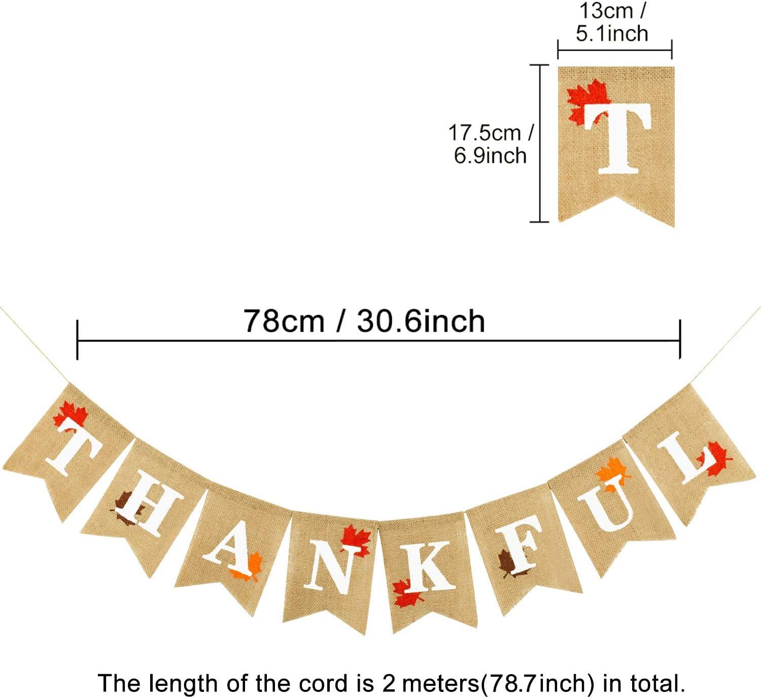Unique design – The banner is printed with words, THANKFUL, which expresses the happiness on Thanksgiving Day. In addition, in order to make the bunting unique, each burlap flag is printed with lively maple leaf patterns